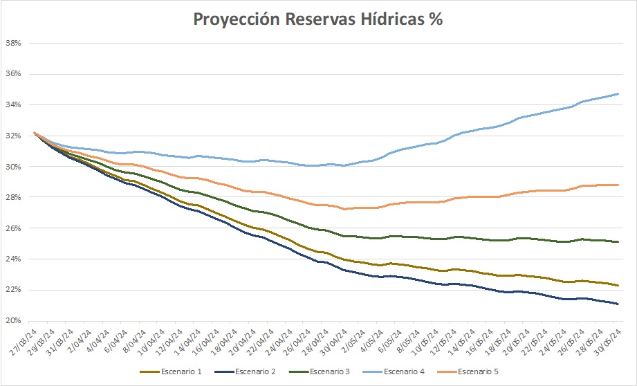 Figura 1. Proyección XM Reservas hídricas marzo 29 2024.