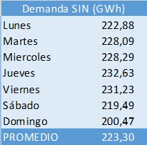 Tabla 2. Demanda diaria del Sistema Interconectado Nacional